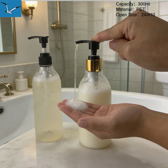 - 3. Gold & Black Lotion Pump for Convenience & Leak-Proof: Equipped with a premium gold and black lotion pump, this bottle enables one-hand easy dispensing, mess-free and efficient. The pump design ensures a secure seal, effectively preventing liquid leakage and keeping the internal product fresh and clean. It is easy to open and close, suitable for daily use, travel, and even commercial packaging scenarios.
