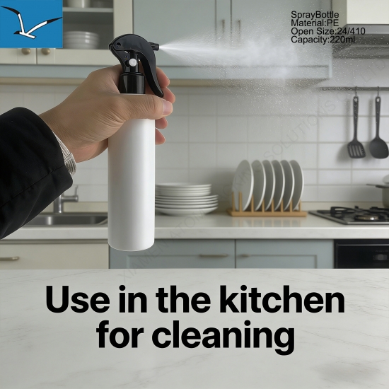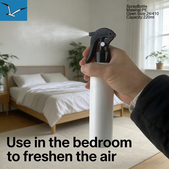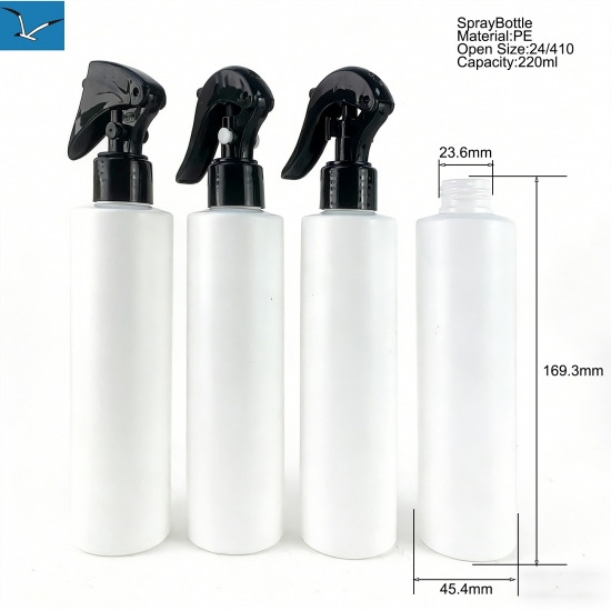 - 1.Made of high-quality matte white PE material, this 220ml 7oz spray bottle is durable, shatterproof and lightweight. The smooth matte surface offers an elegant touch and prevents fingerprints, perfect for long-term daily use and repeated refilling.