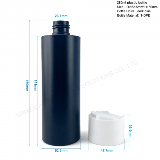 280ml HDPE Squeeze Bottle Matte Disc Top Cap Personal Care Packaging Shampoo Conditioner Lotion Hand Soap Hair Gel Custom Logo