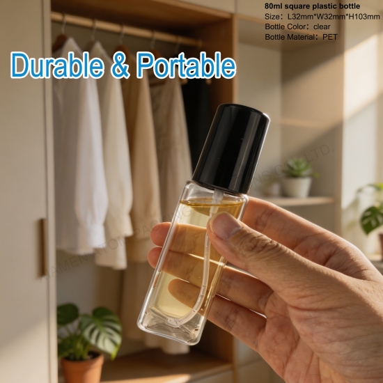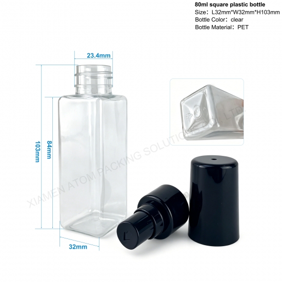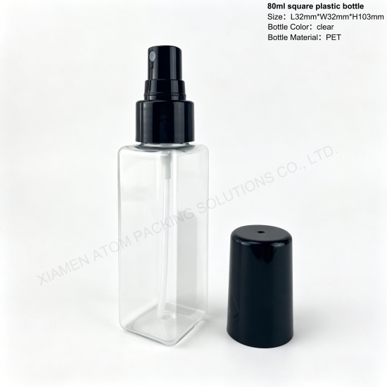 80ml PET Square Fine Mist Spray Bottle Empty Refillable Cosmetic Container Perfume Toner Lotion Private Label OEM Custom Service