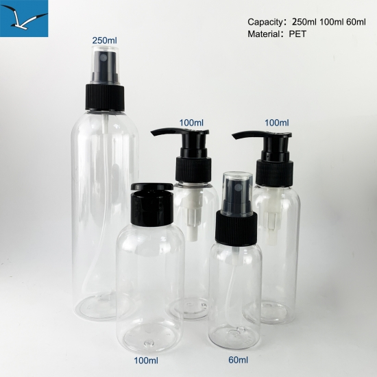 1.Multiple capacity options including 60ML, 100ML, 250ML and 400ML, made of durable transparent PET plastic, lightweight and shatter-resistant for daily household and travel use.
