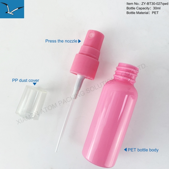 30ml Macaron Pink Cylinder PET Plastic Fine Mist Spray Lotion Pump Sprayer Skincare Shampoo Perfume Cosmetic Packaging