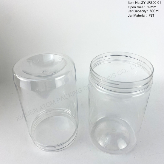 - 800ml large clear PET jar, perfect for food, cosmetics and daily storage.