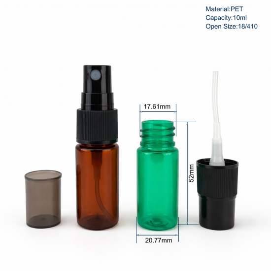 Amber Green Small Capacity 10ml PET Plastic Bottles Fine Mist Spray for Cosmetic Liquid Packaging Travel Perfume Bottle