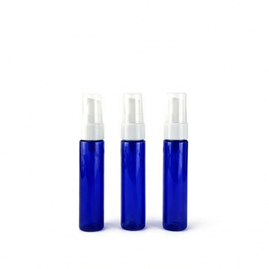 Custom 30ml Blue PET Cylinder Dispenser Plastic Bottle for Cosmetic Lotion Facial Foaming Eyelash Shampoo Bottle