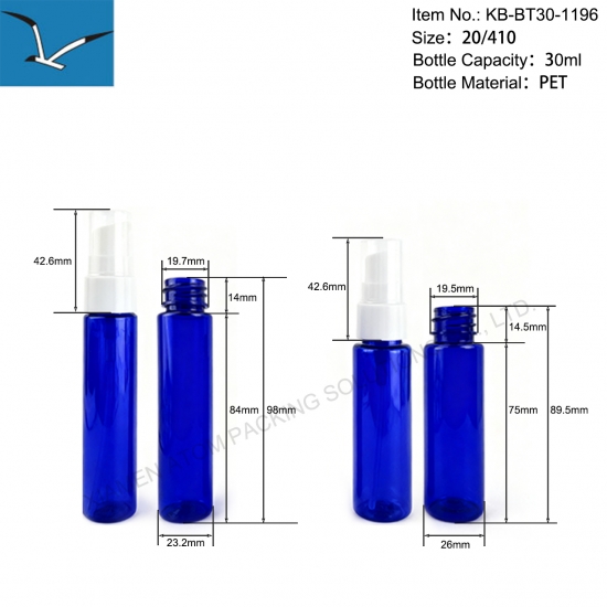 - Design:It is made of high-quality PET material, odorless, free of plasticizers and other harmful substances, ensuring safety and reliability for use. The blue/Amber bottle body provides appropriate light shielding to protect the contents inside. The bottle mouth follows the 20/410 standard, which is compatible with common pump heads, facilitating press-to-dispense use of the product.this bottle is available in two height options: 89.5mm and 98mm.Both the 89.5mm and 98mm versions are lightweight and portable, making them suitable for travel or daily use.