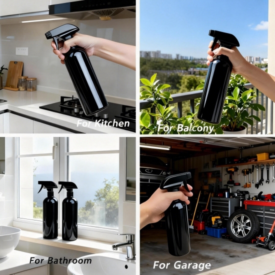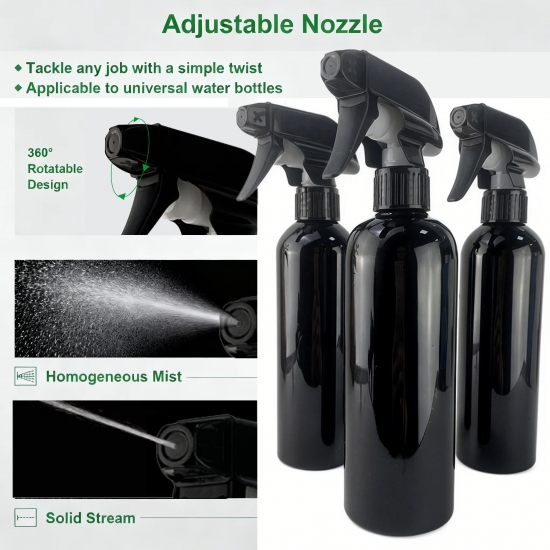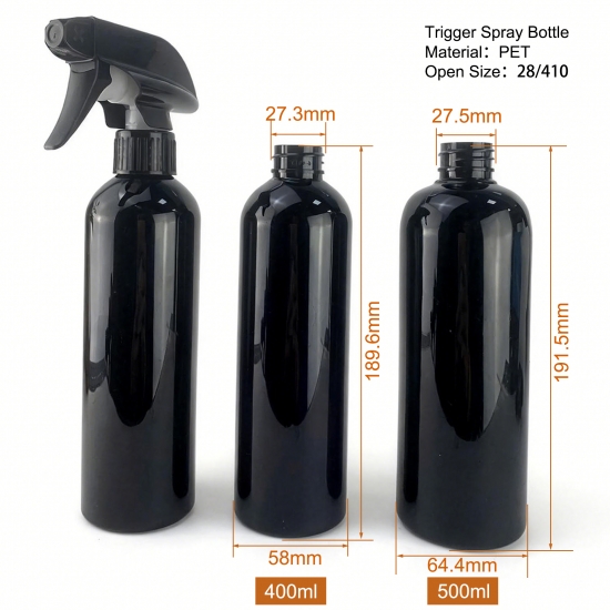 Custom Color 400ml 500ml Black PET Plastic Trigger Sprayer Bottle Screw Cap Fine Mist Spray Stream Car Cleaning Refillable