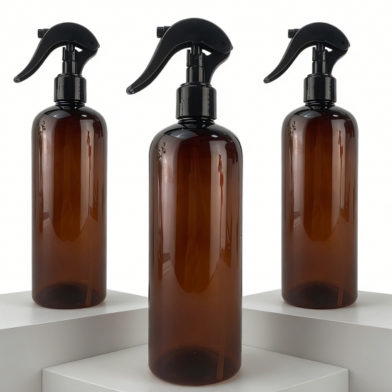Custom Color 500ml PET Plastic Empty Mist Spray Bottle Amber for Car Cleaning Refillable Trigger Screw Cap Kitchen Bedroom