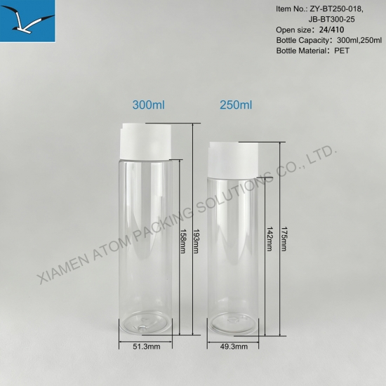 - Design:The transparent bottle allows easy checking of the remaining volume and offers a comfortable grip, making it suitable for personal care product refills. 300ml/250ml with 24/410 neck.No need to unscrew the cap for daily useāone-handed operation is convenient. It enables precise dosage control to avoid waste.