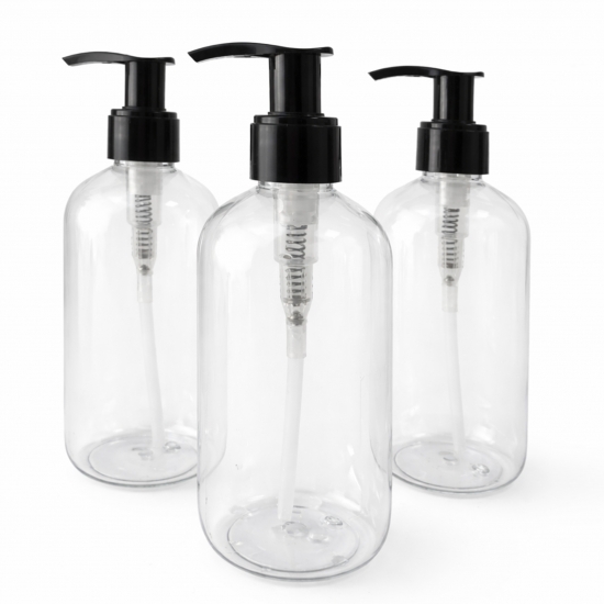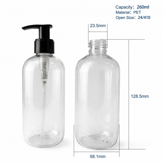 Empty 8oz 250ml PET Clear Bottle c for Cosmetic Shampoo Shower Liquid Soap Gel Packaging