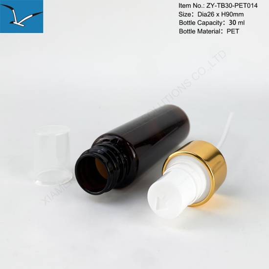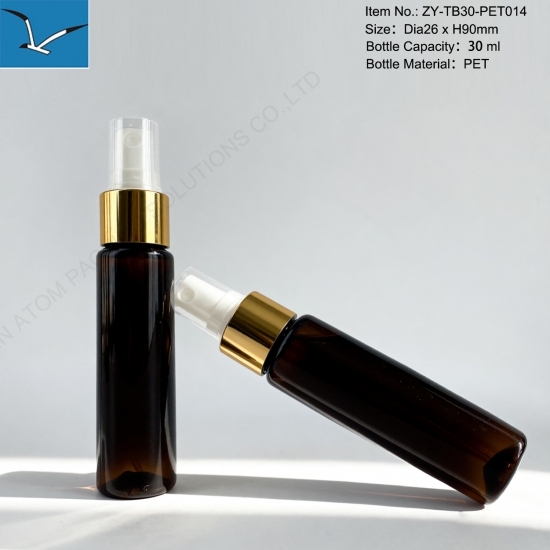 New PET Amber Cylinder Plastic Bottles 30ml 50ml 100ml 120ml Cosmetic Lotion Dispenser with Pump Sprayer Silk Screen Printed