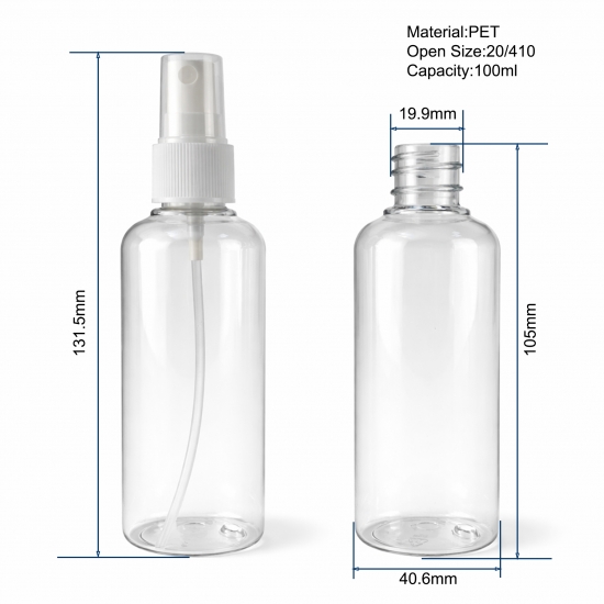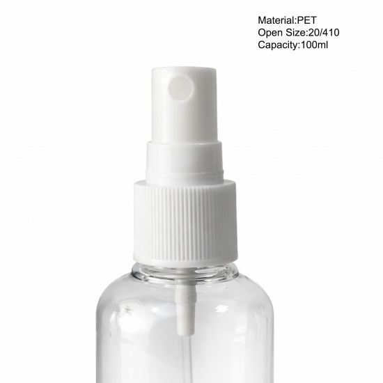 Stock 3oz 100ml Clear Boston PET Plastic Cosmetic Bottles 20/410 White Mist Spray Bottle Perfume Hand Wash Hair Care Bottle