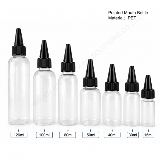 Transparent Cylinder PET Plastic Squeeze Bottles 15ml 120ml Pointed Mouth Screw Cap Applicator Liquid Hair Oil Sauce Packaging
